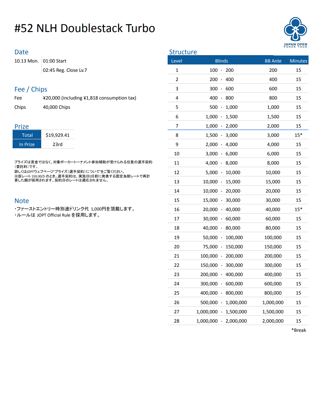 | 店舗名 | JAPAN OPEN POKER TOUR |