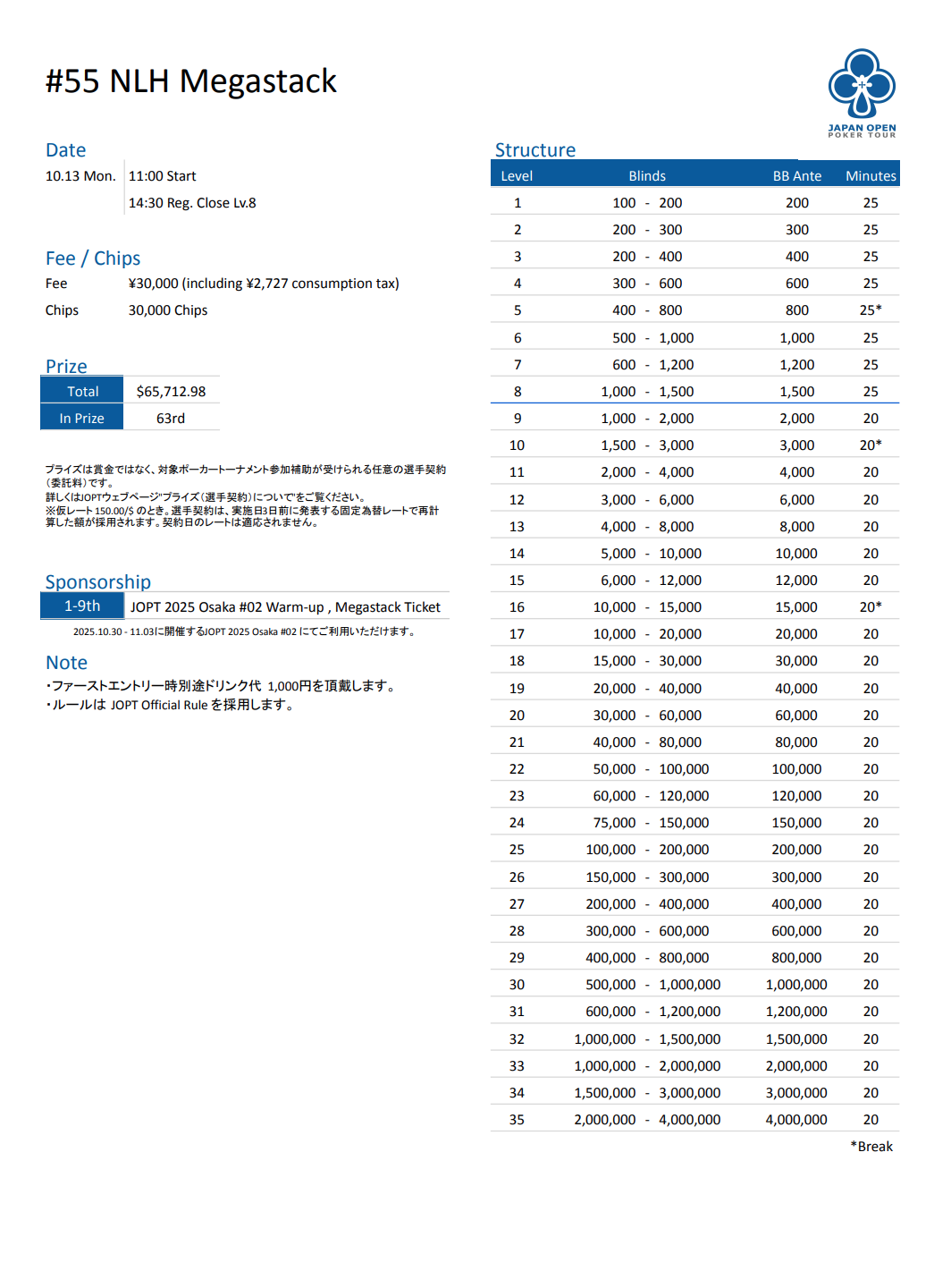 | 店舗名 | JAPAN OPEN POKER TOUR |