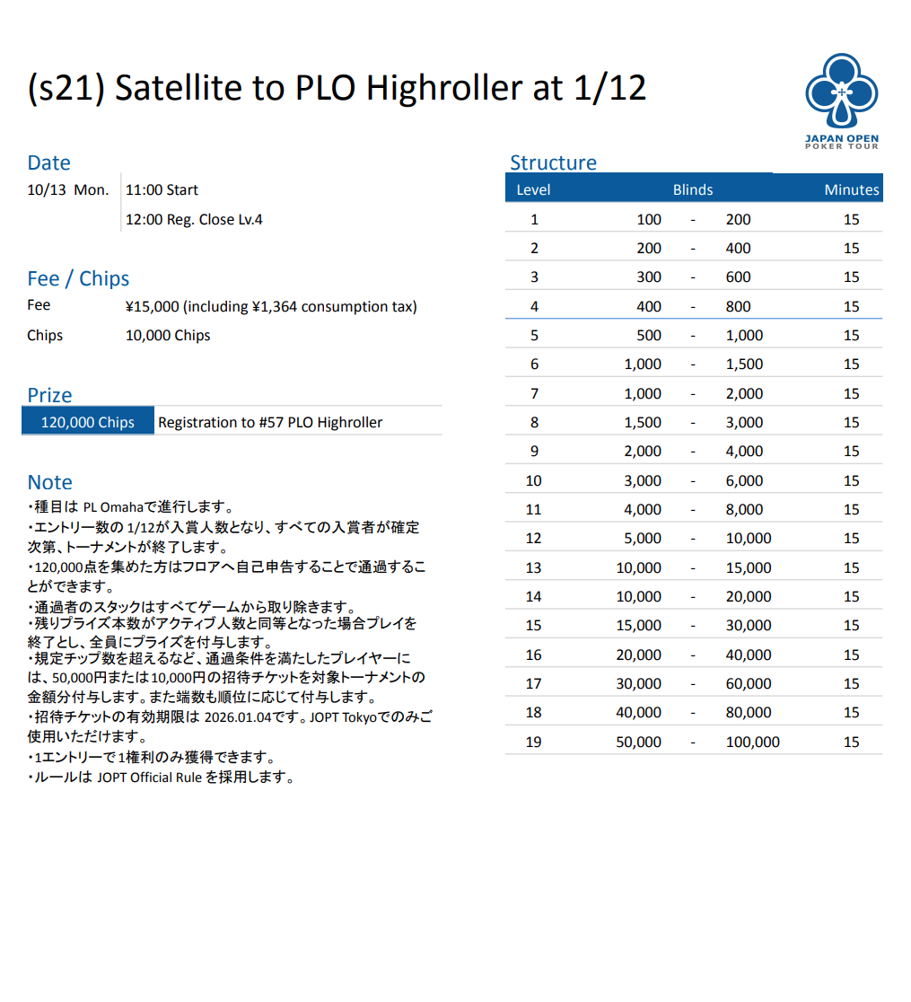 | 店舗名 | JAPAN OPEN POKER TOUR |