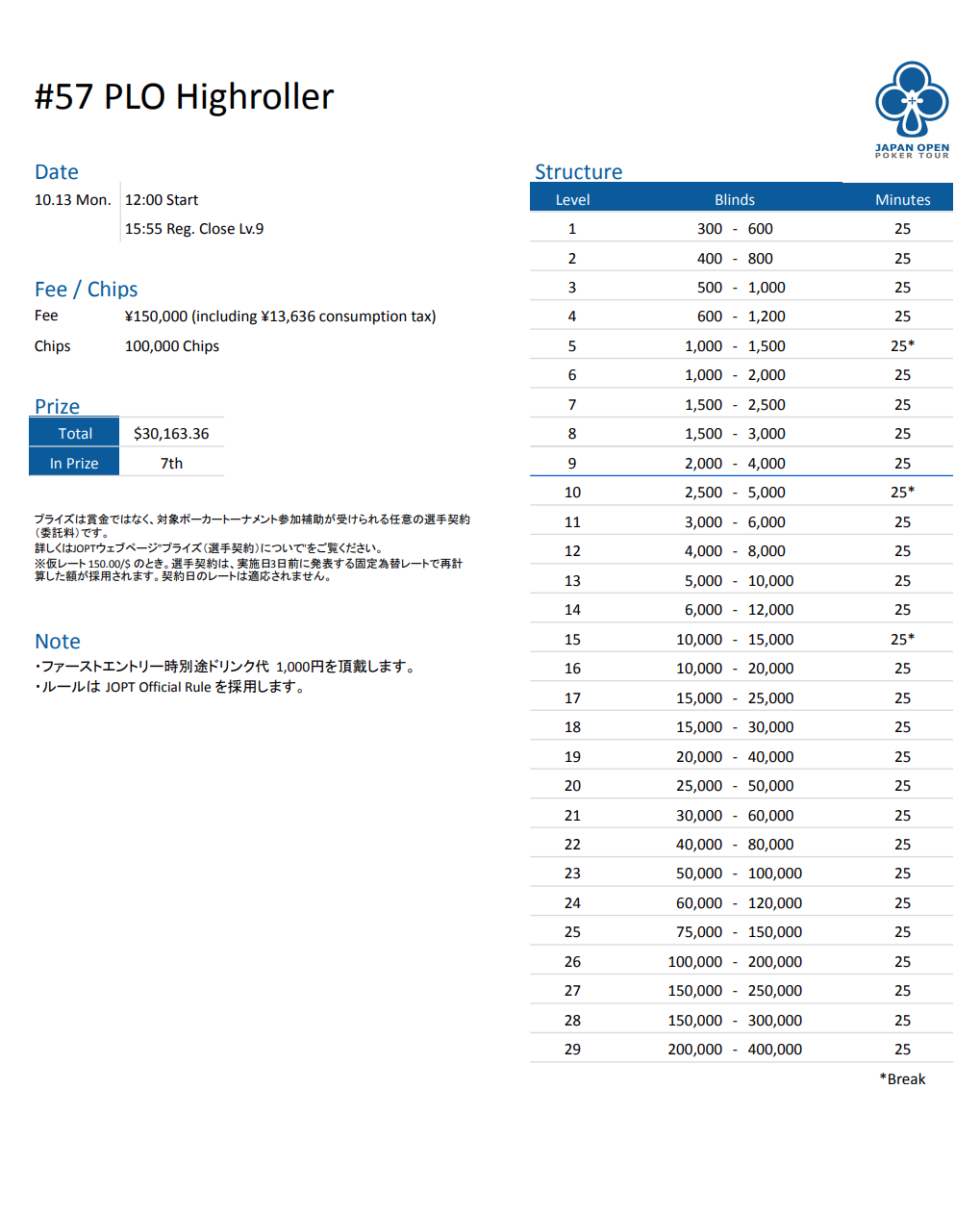 | 店舗名 | JAPAN OPEN POKER TOUR |
