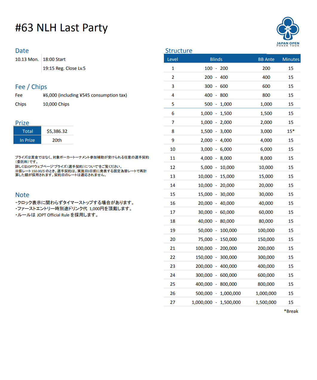 | 店舗名 | JAPAN OPEN POKER TOUR |