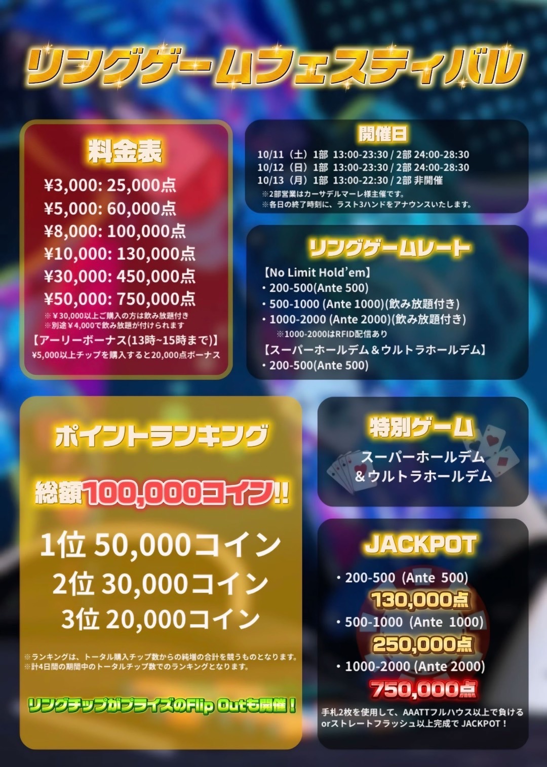 | ゲーム | ノーリミット / テキサスホールデム / Turbo / Point |