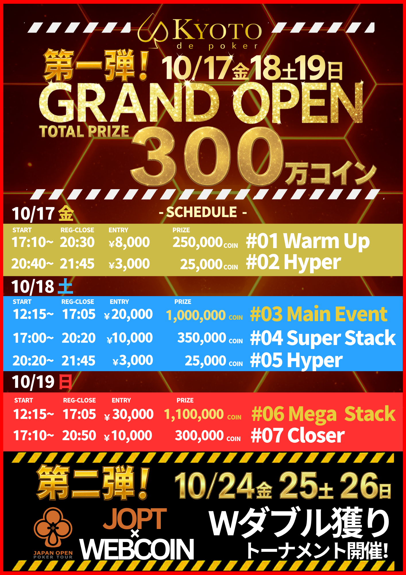 | 12/15(月) | 18:00 | 【JOPT 15Ticket】メガサテライト | Casino Live Tokyo |