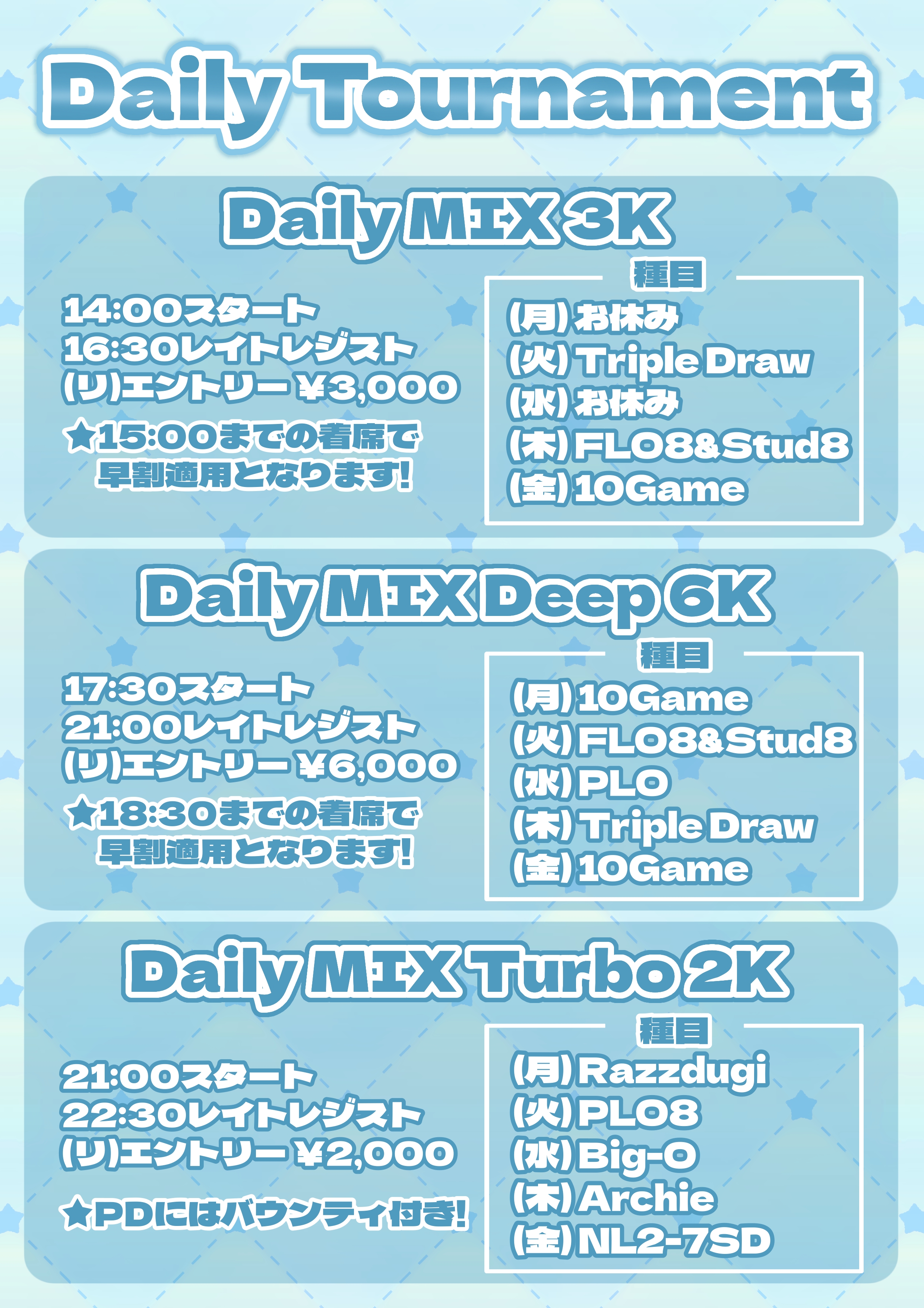 | 12/16(火) | 15:30 | 【♠︎SPADIE】Daily NLH 2K | 秋葉原カジノクエスト |