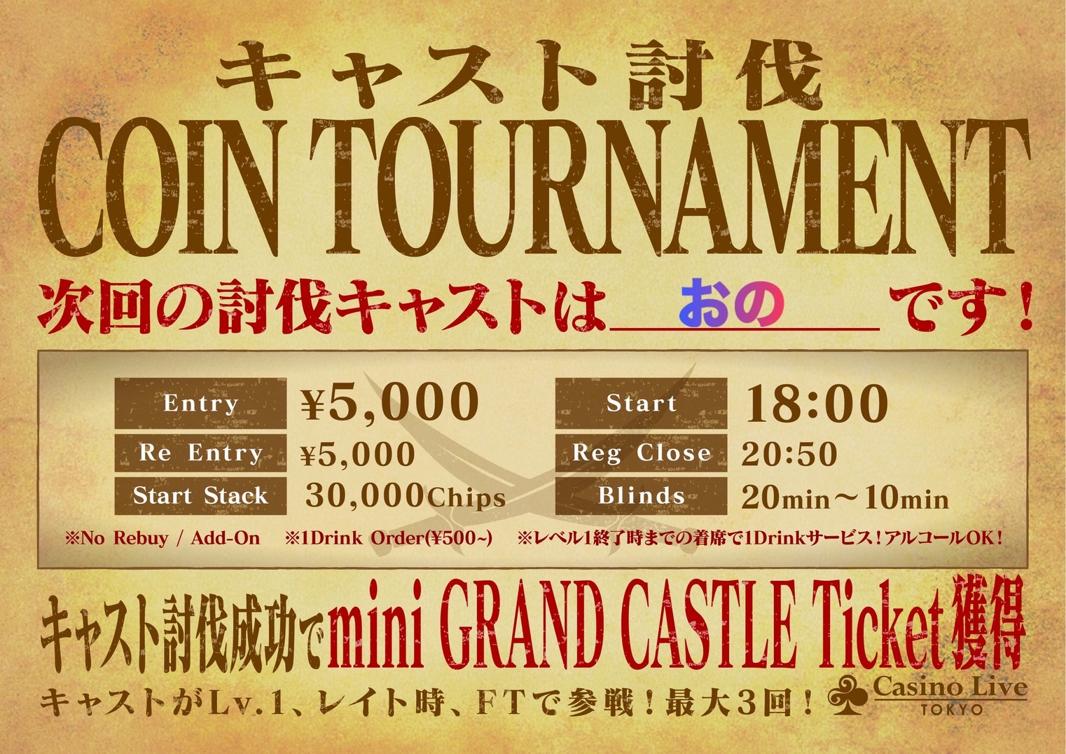 おの討伐トーナメント【優勝4万コイン!バウンティminiGRAND CASTLE TICKET3枚! 】