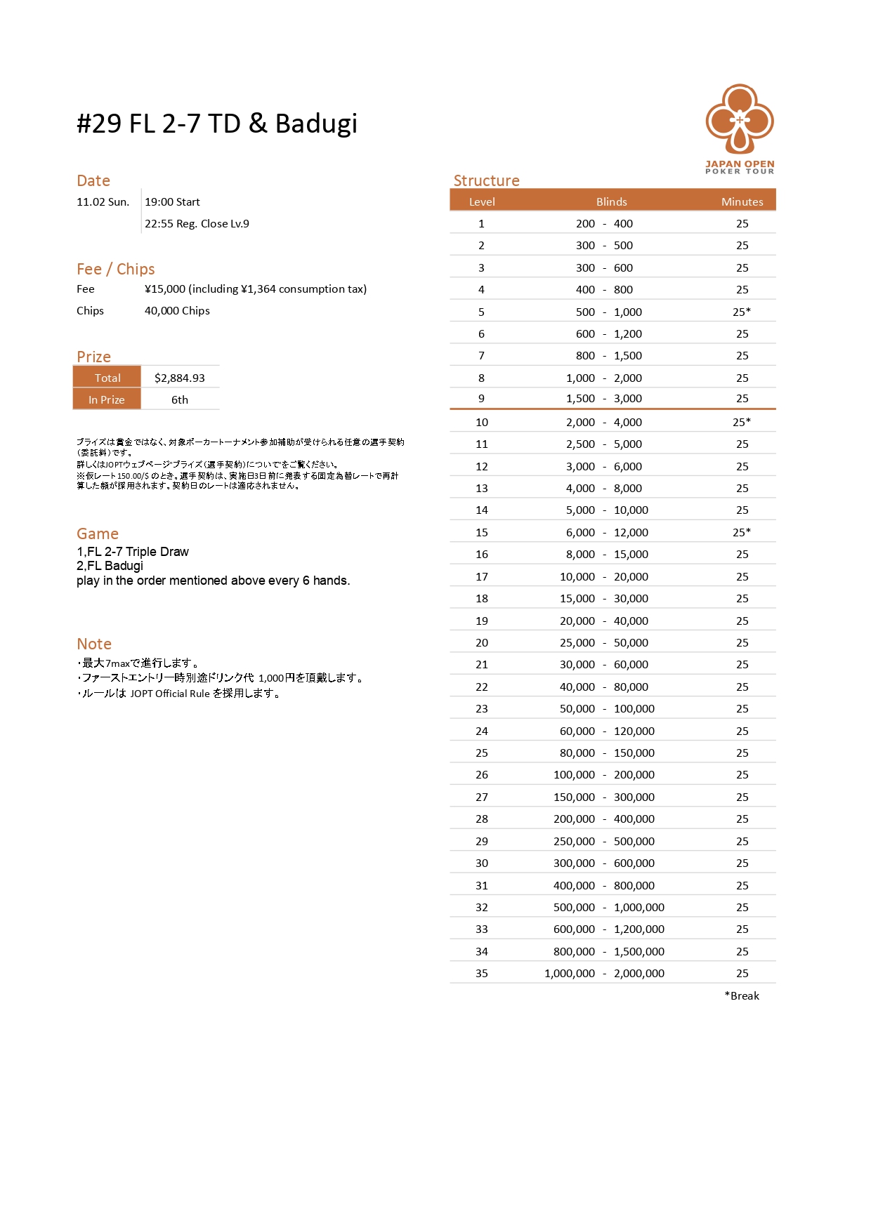 | 公式ページ | https://japanopenpoker.com/wp-content/uploads/2025/JOPT_2025_Osaka_02/Players_Guide_JP.pdf |