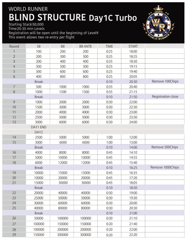 開催時間:18時00分 受付終了は22時(9R開始)まで