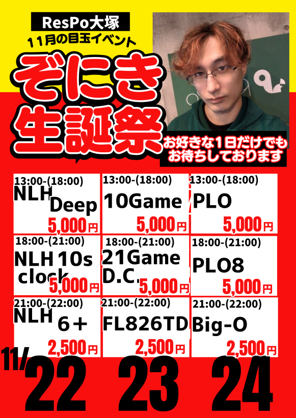 | 12/16(火) | 15:30 | 【♠︎SPADIE】Daily NLH 2K | 秋葉原カジノクエスト |