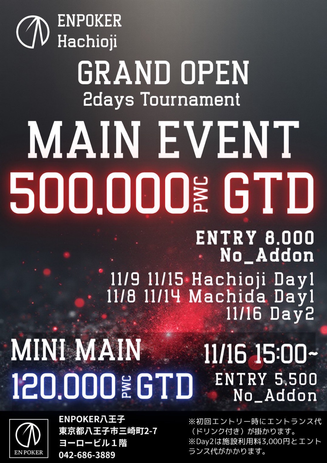 【120,000保証】ENPOKER八王子 グランドオープン MiniMain
