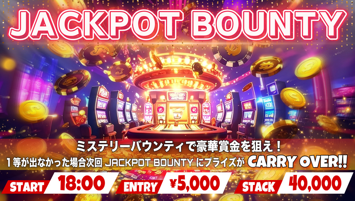 その日のトーナメントでJACKPOTが出なかった場合は次回のJACKPOTに上乗せして繰り越されます。