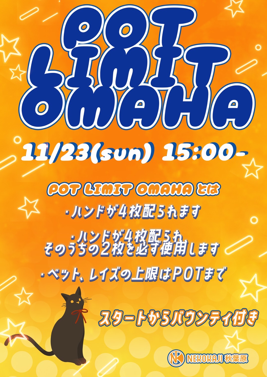 | ゲーム | 30,000点 / ポットリミット / オマハ / 20Min. / ポイントなし |