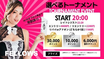 20:50までにエントリーで早割!46000保証【WPTチケット、WEBコイン、+POINT、FELLOWSポイント】選べるトーナメント!