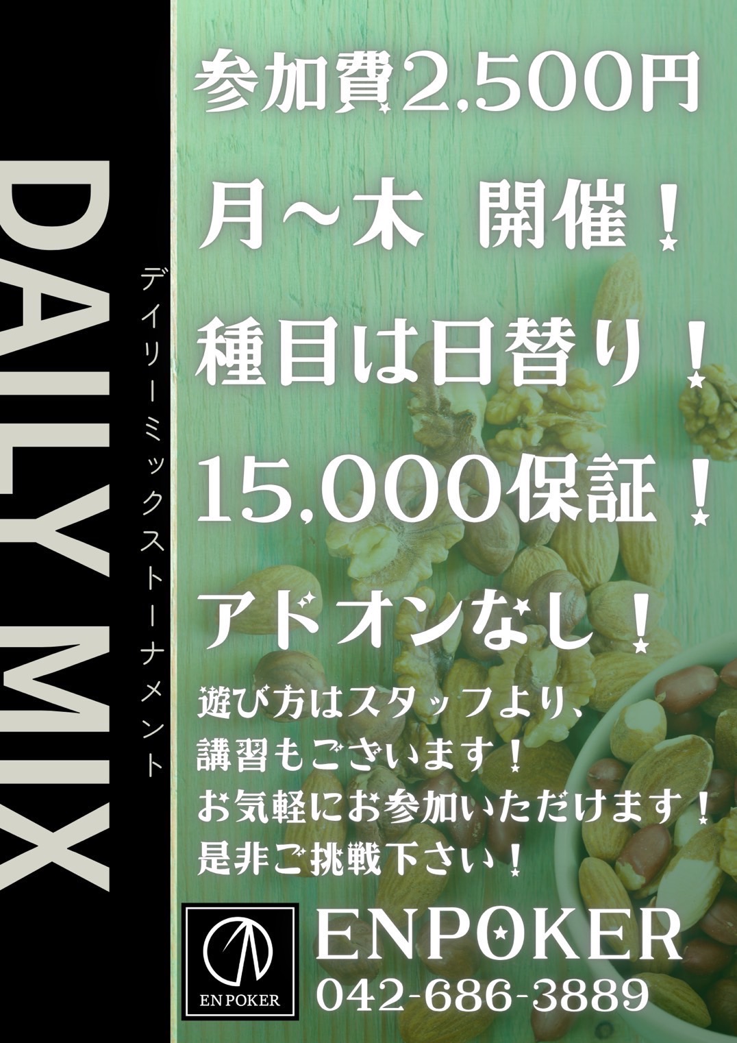 | 12/15(月) | 16:00 | 【JOPT】1000円で参加できる1卓限定 サテライト | EGP EBISU |