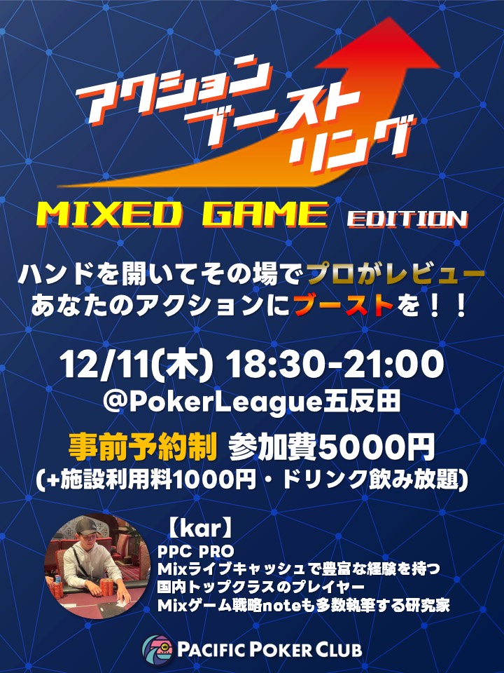 | 12/15(月) | 18:00 | 【JOPT 15Ticket】メガサテライト | Casino Live Tokyo |