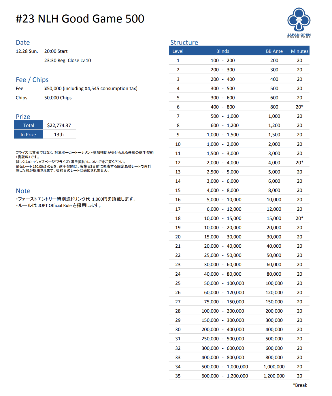 | 公式ページ | https://japanopenpoker.com/tokyo/ |