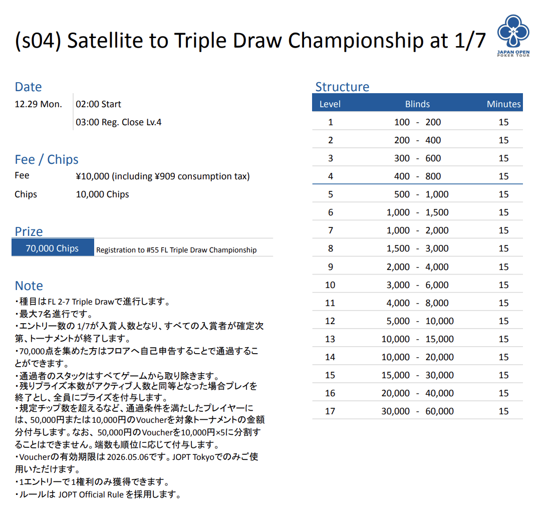 | 公式ページ | https://japanopenpoker.com/tokyo/ |