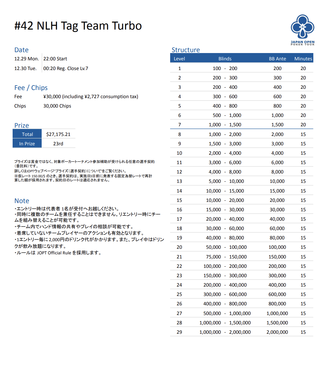 | 公式ページ | https://japanopenpoker.com/tokyo/ |
