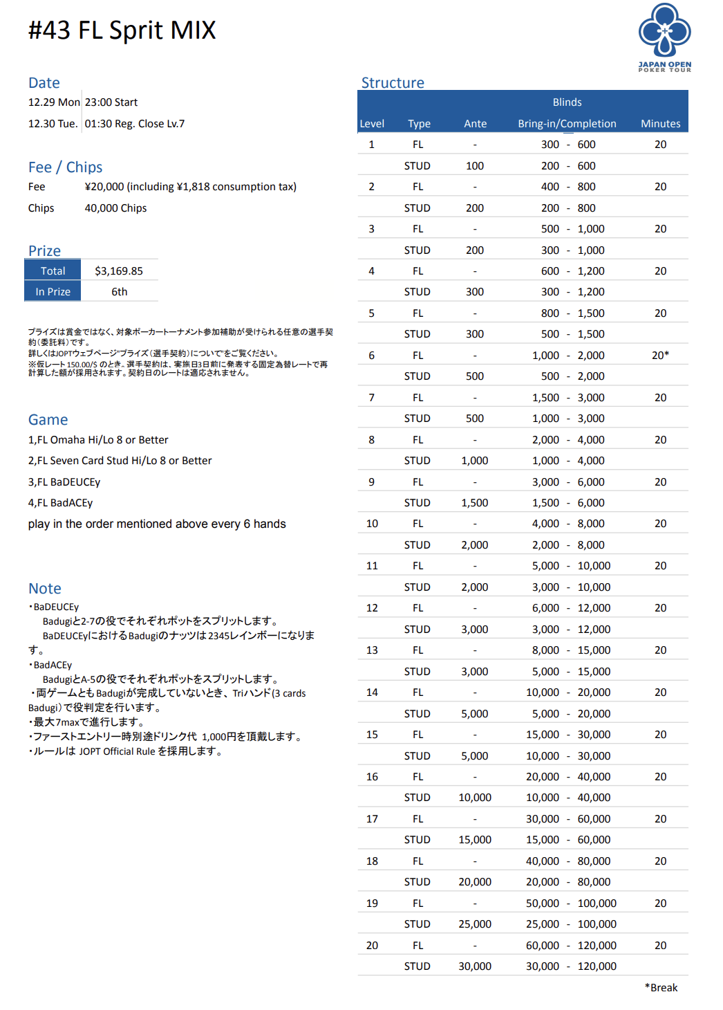 | 公式ページ | https://japanopenpoker.com/tokyo/ |