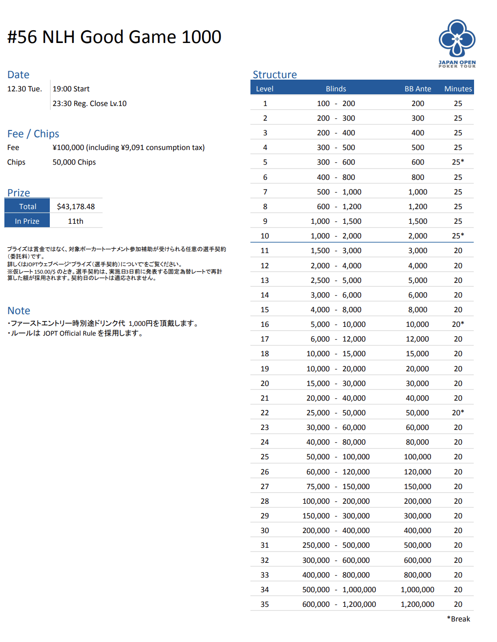 | 公式ページ | https://japanopenpoker.com/tokyo/ |