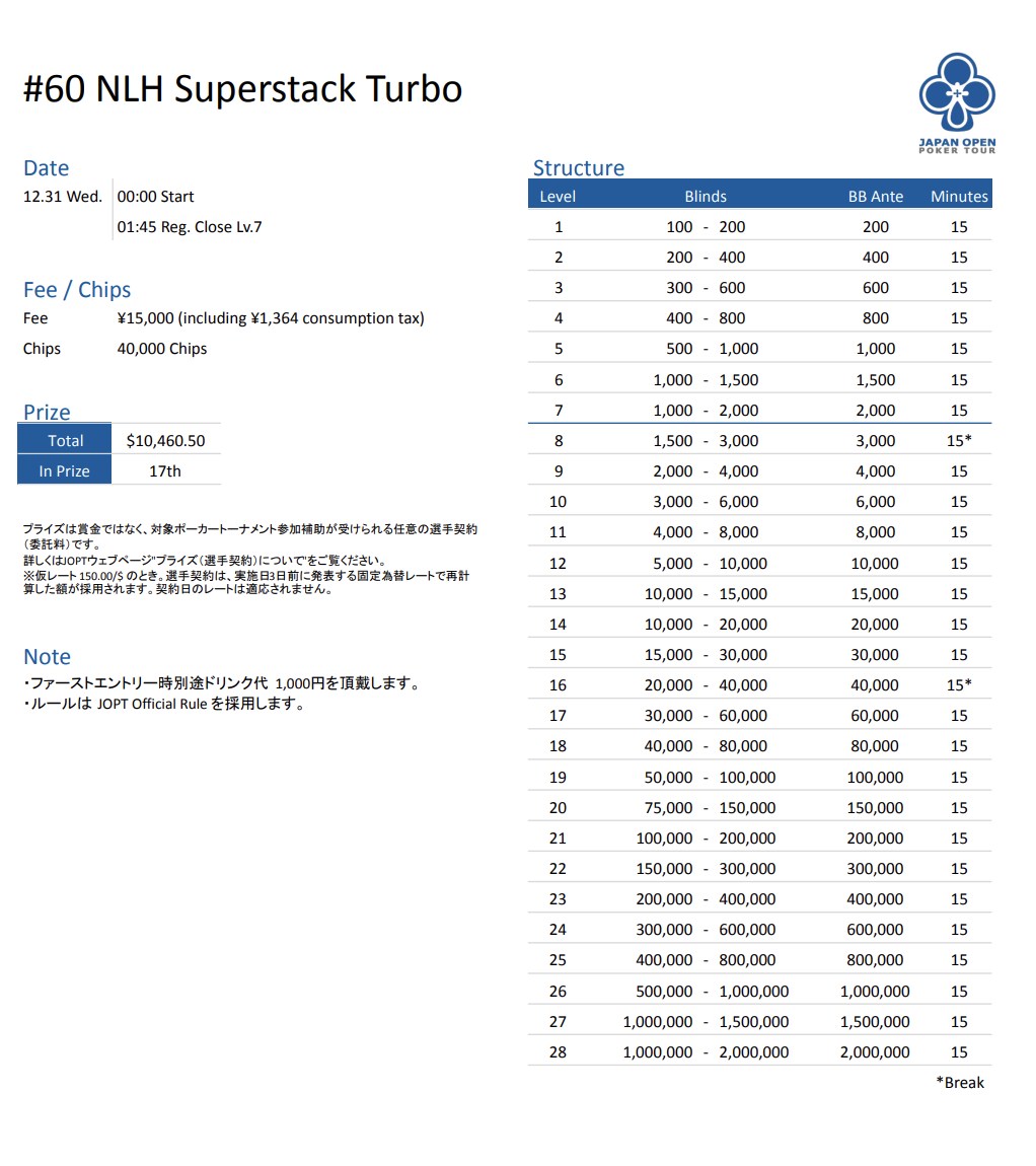| 公式ページ | https://japanopenpoker.com/tokyo/ |