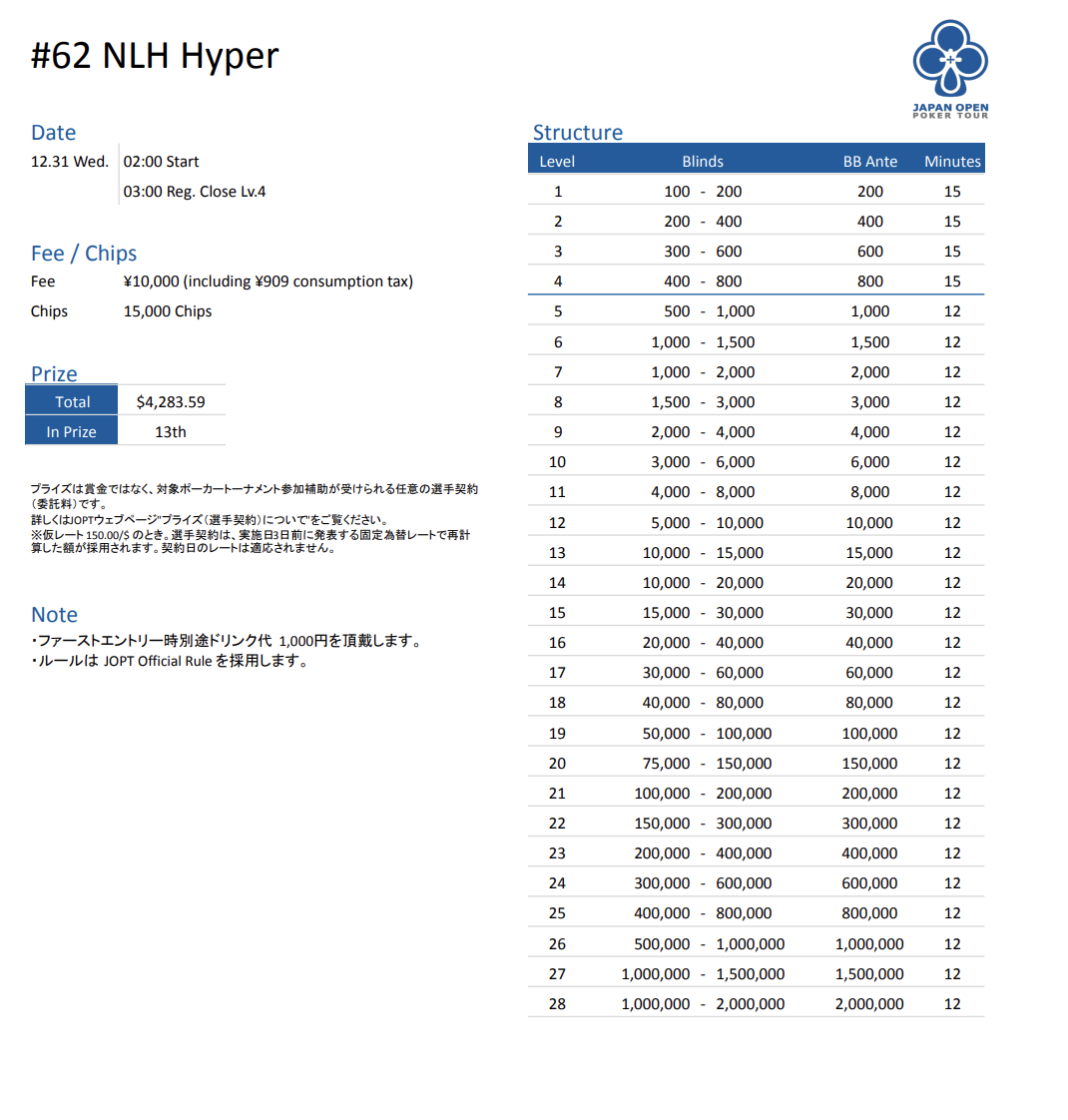| 公式ページ | https://japanopenpoker.com/tokyo/ |