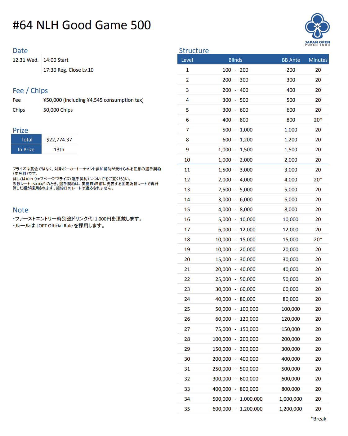 | 公式ページ | https://japanopenpoker.com/tokyo/ |