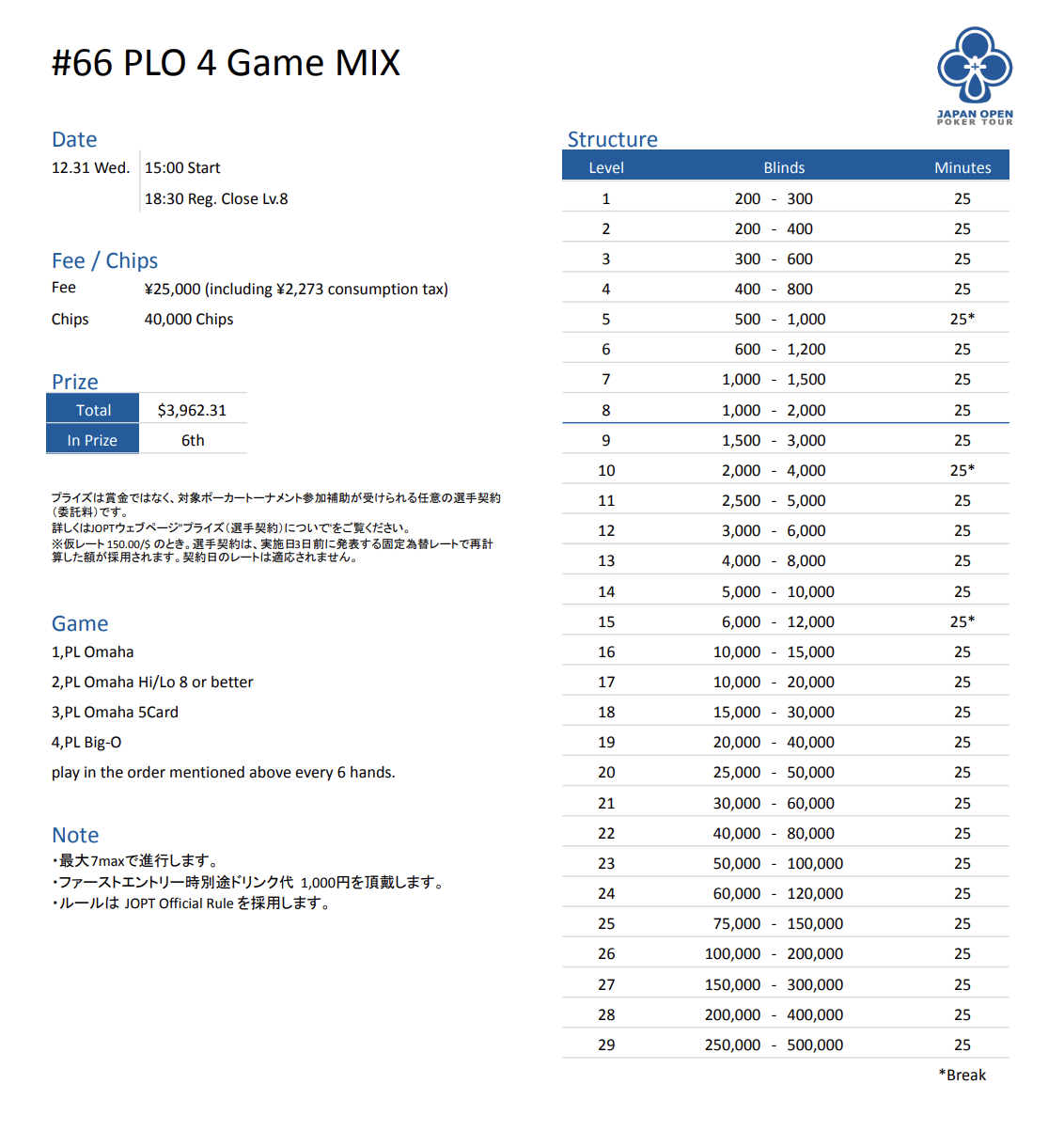 | 公式ページ | https://japanopenpoker.com/tokyo/ |