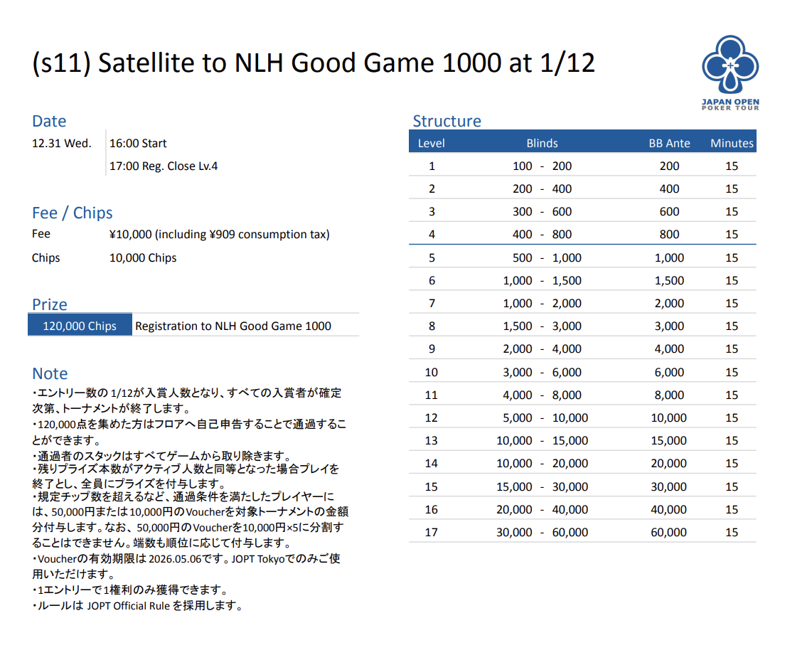 | 公式ページ | https://japanopenpoker.com/tokyo/ |
