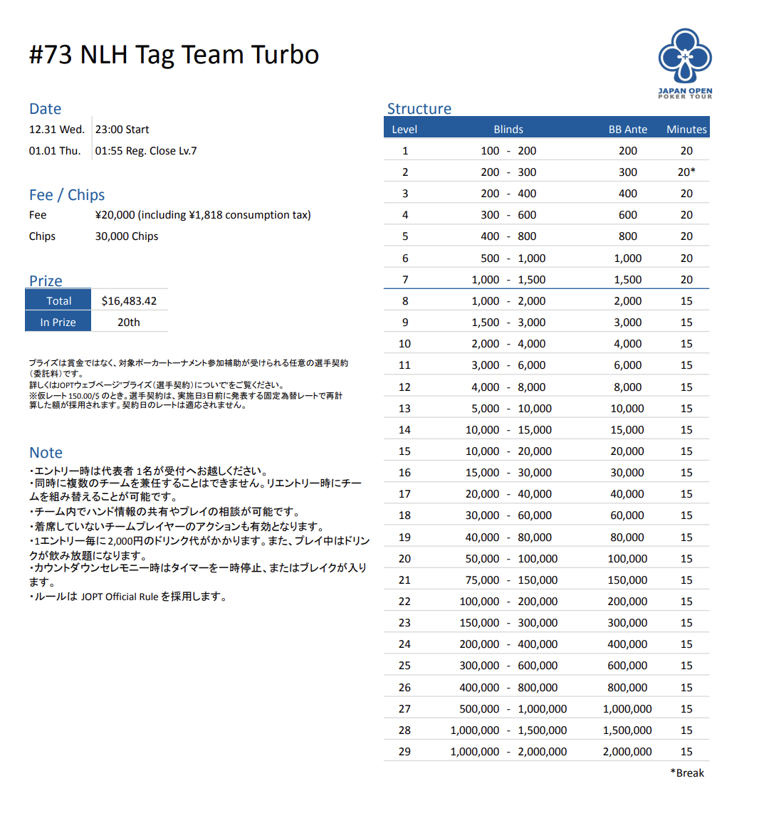 | 公式ページ | https://japanopenpoker.com/tokyo/ |