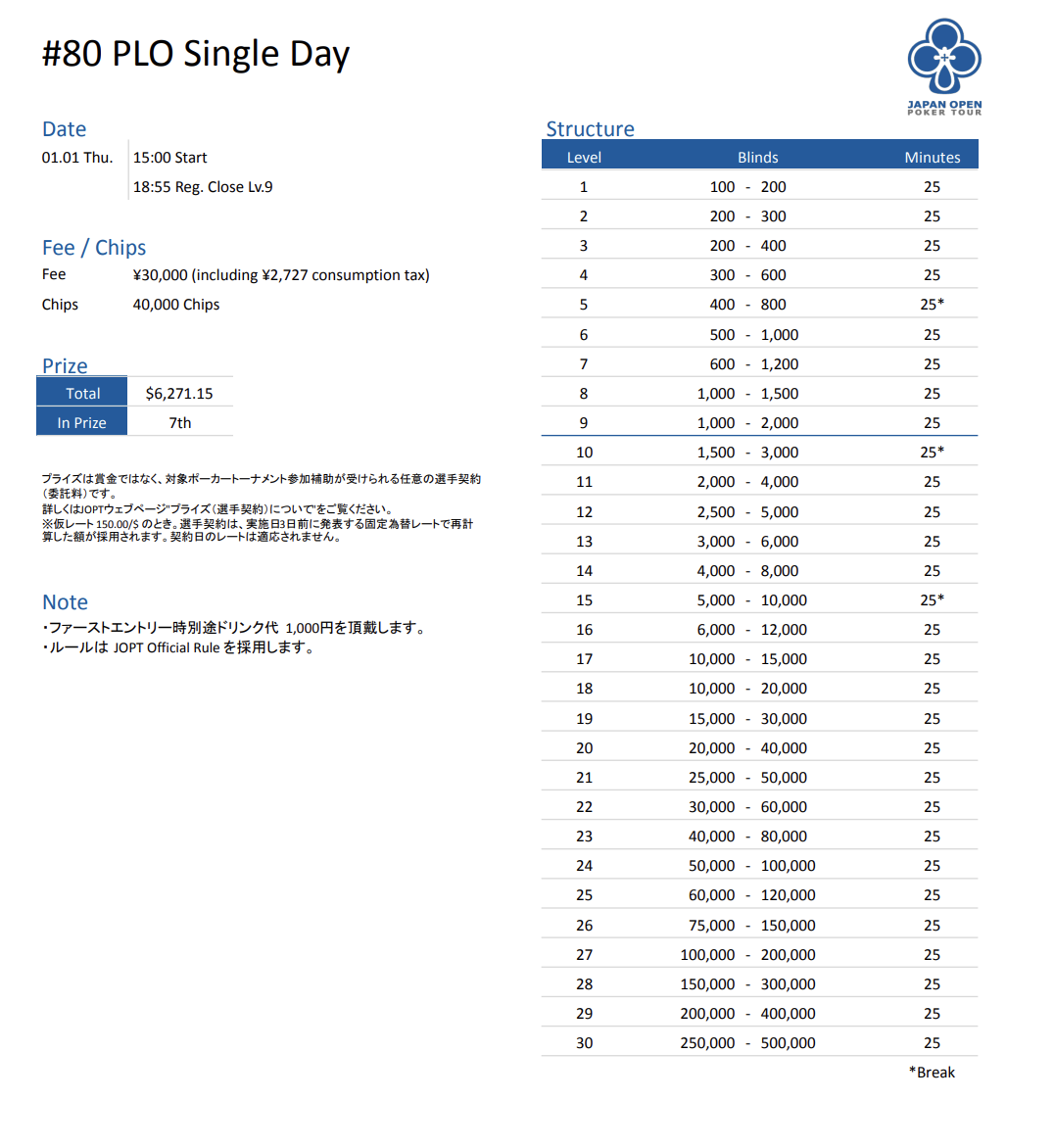 | 公式ページ | https://japanopenpoker.com/tokyo/ |