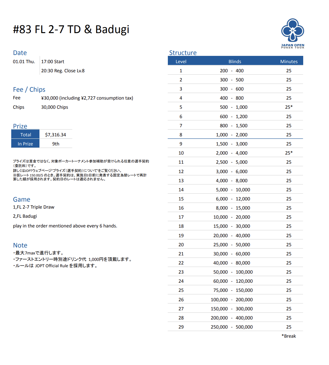 | 公式ページ | https://japanopenpoker.com/tokyo/ |