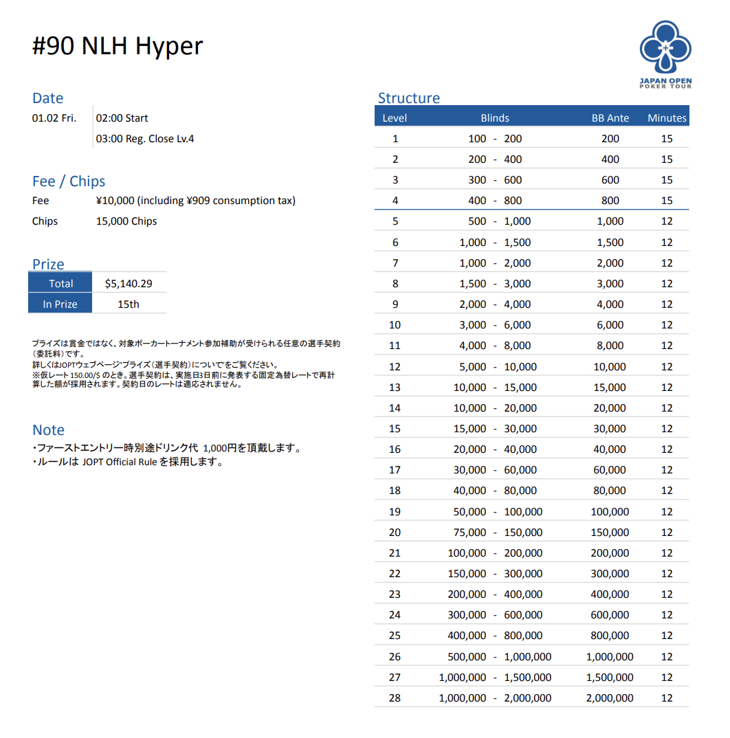 | 公式ページ | https://japanopenpoker.com/tokyo/ |