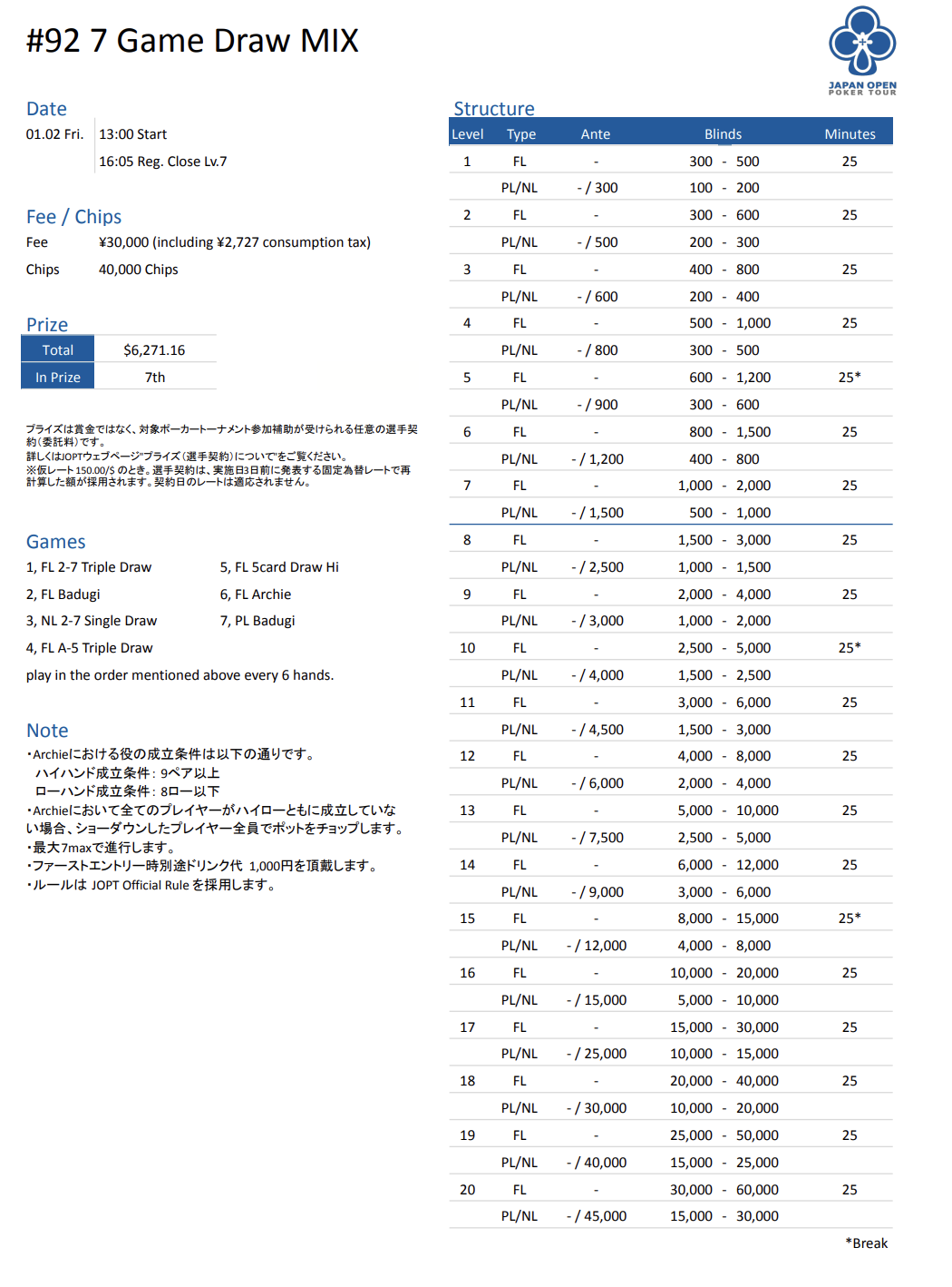 | 公式ページ | https://japanopenpoker.com/tokyo/ |