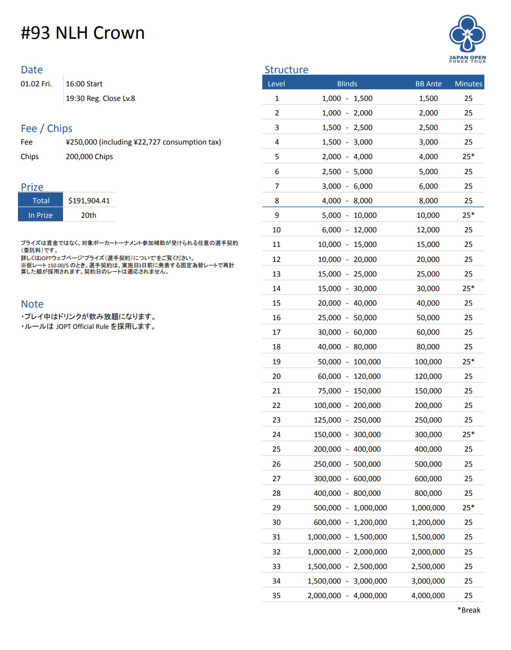 | 公式ページ | https://japanopenpoker.com/tokyo/ |