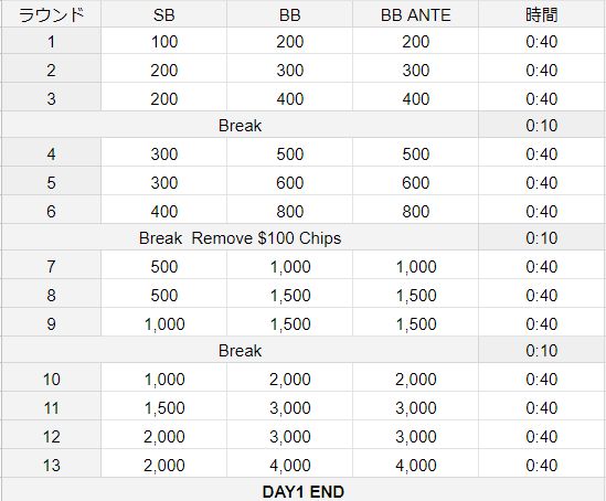 Day1ラストラウンドで残り9人にならない場合はExtraRound(2500/5000)40minでDay1終了