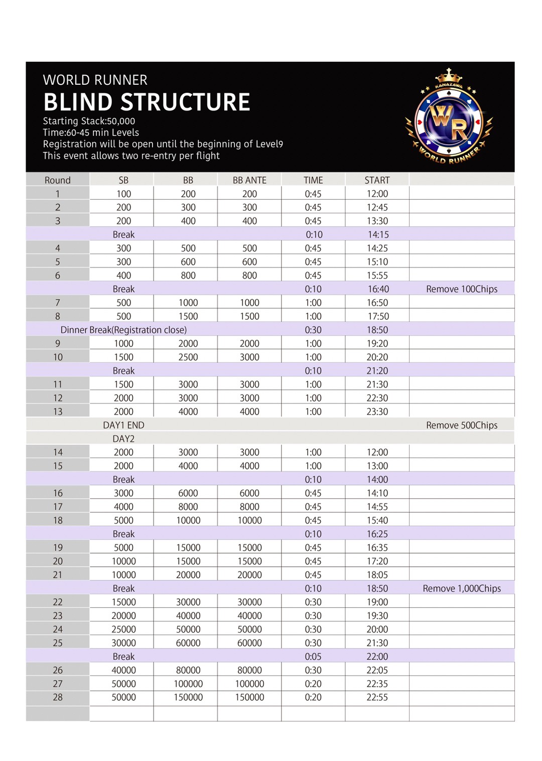 Stack 50,000 点スタート 45-60分ブラインド(変則)