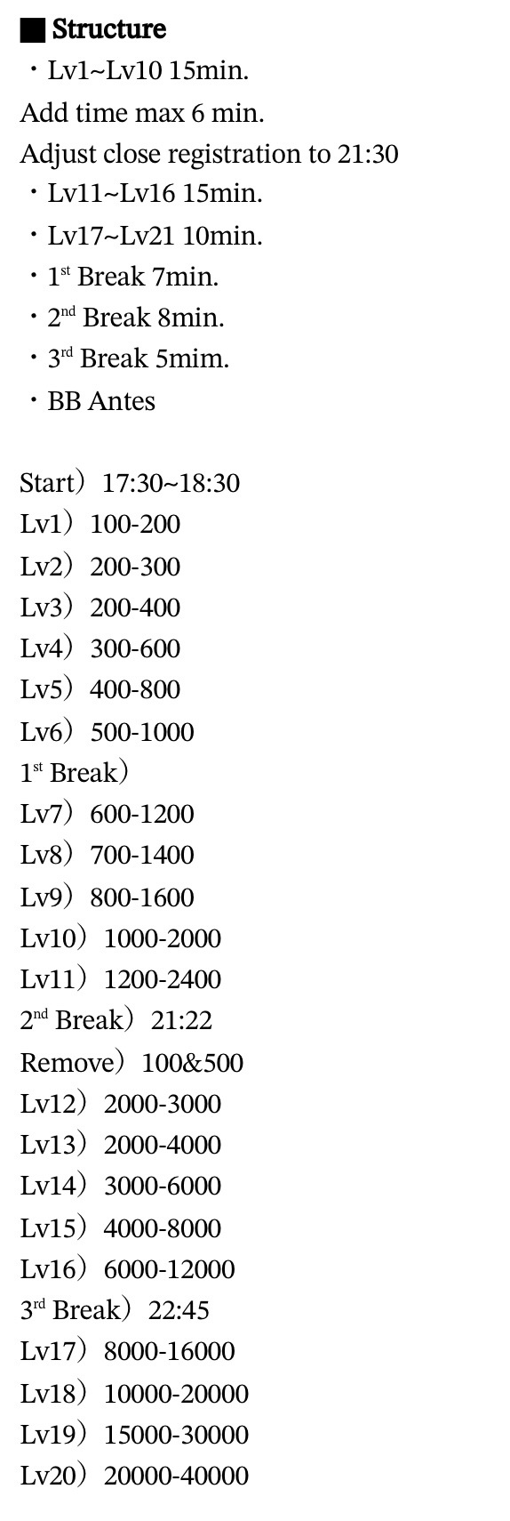 | 12/15(月) | 18:00 | 【JOPT 15Ticket】メガサテライト | Casino Live Tokyo |