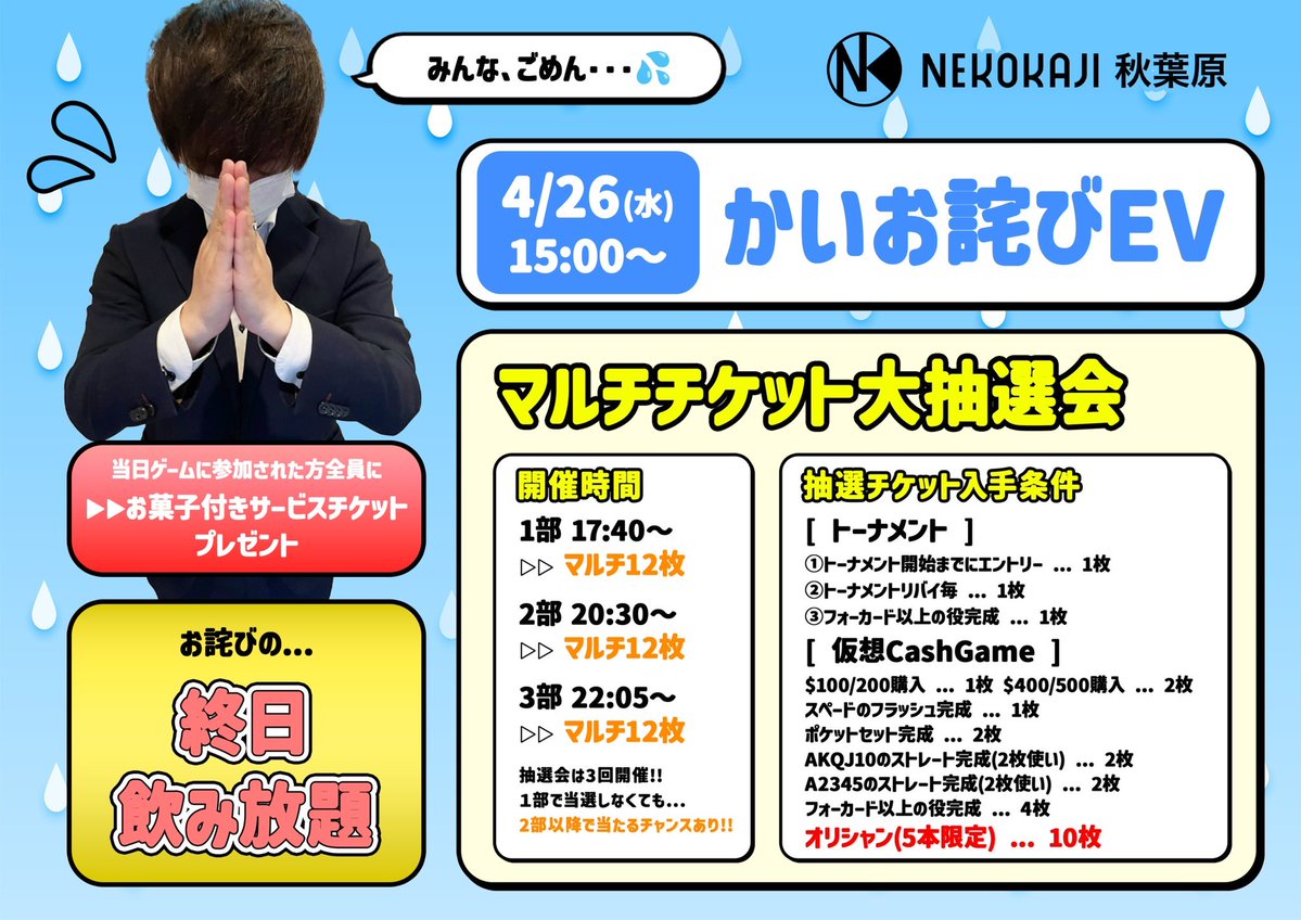 | 12/16(火) | 15:30 | 【♠︎SPADIE】Daily NLH 2K | 秋葉原カジノクエスト |