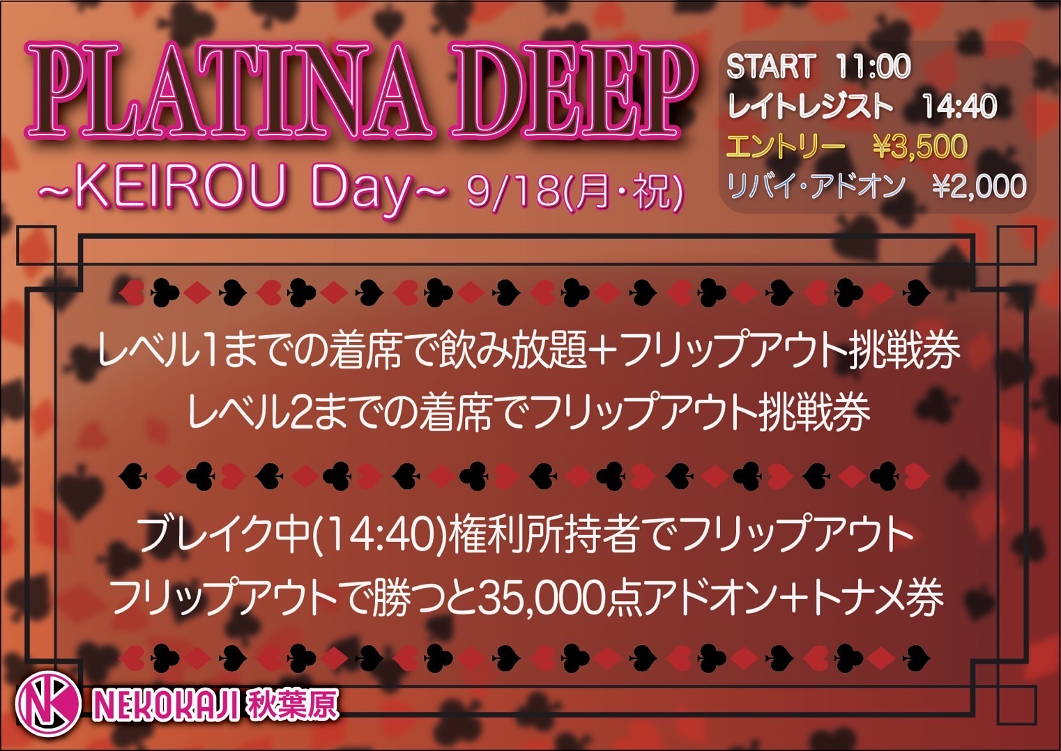 ♡PLATINA DEEPフルスタックシート・・・毎週土日祝11:00〜開催されるPLATINA DEEPのフルスタック無料券としてご利用いただけます