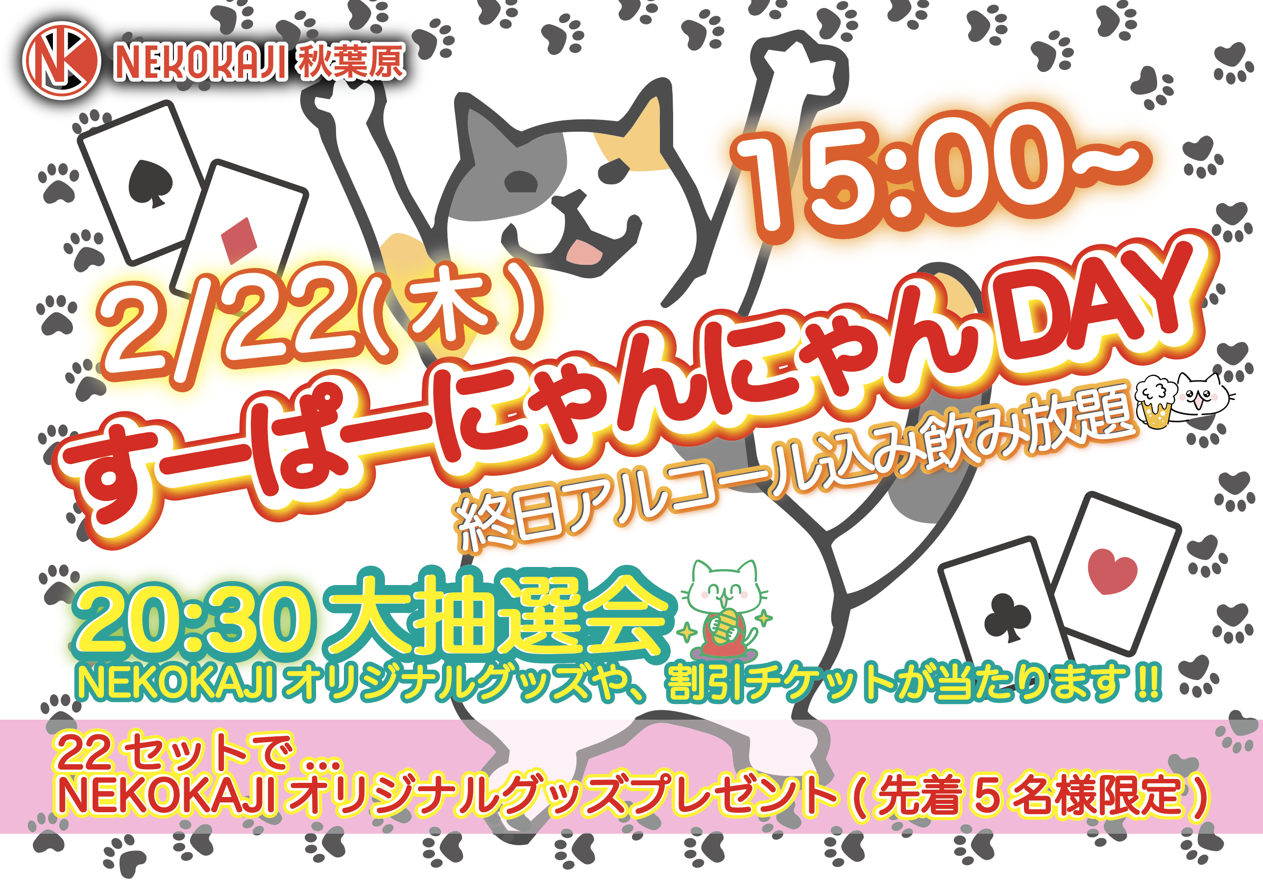 \\2/22は全日アルコール込みで飲み放題//