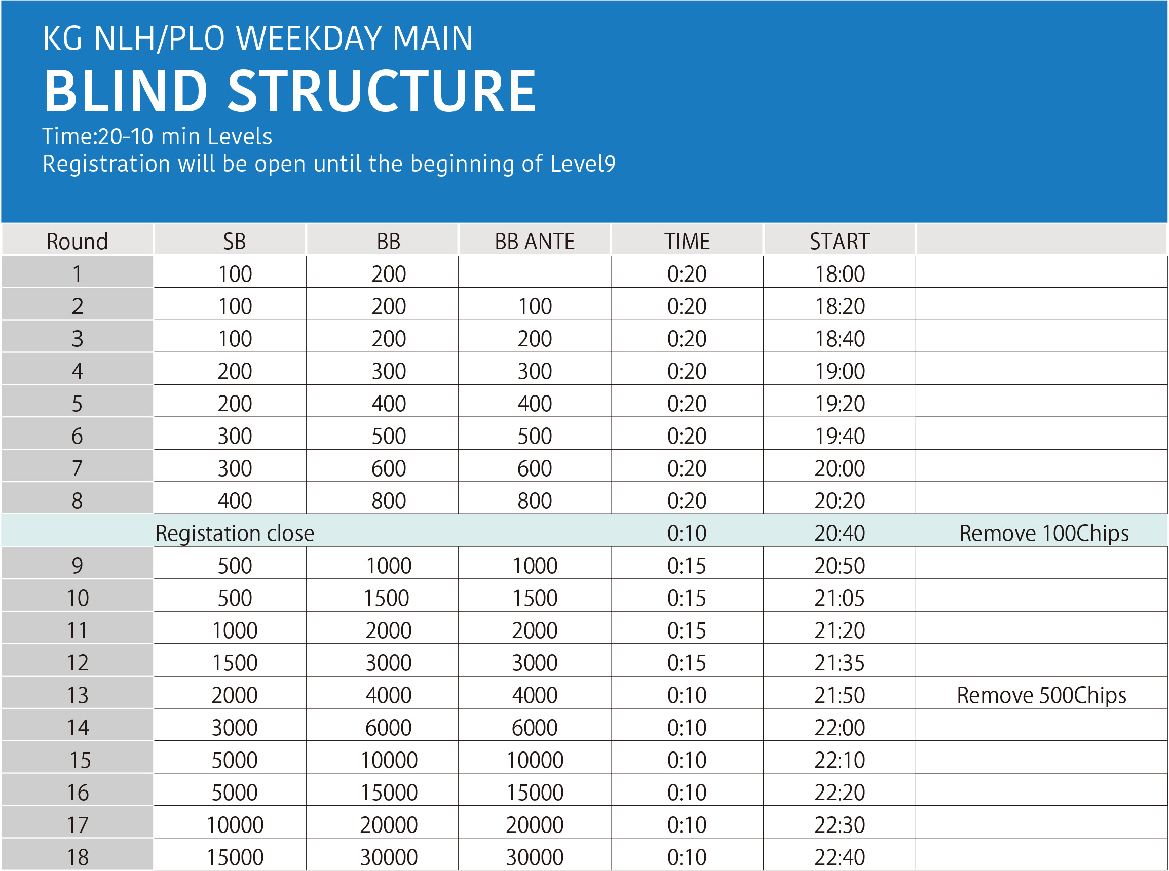 開催時間:18時00分 受付終了は20時40分(8R終了)まで