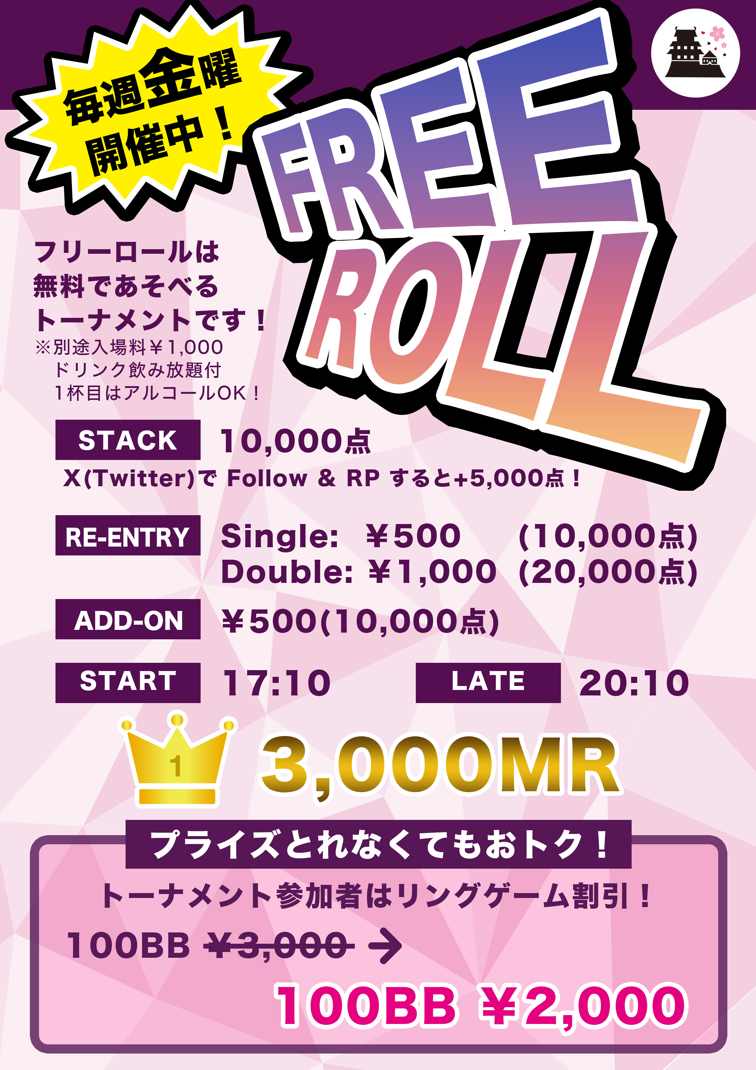 FREE ROLL【毎週金曜はなんと0円トナメ!】