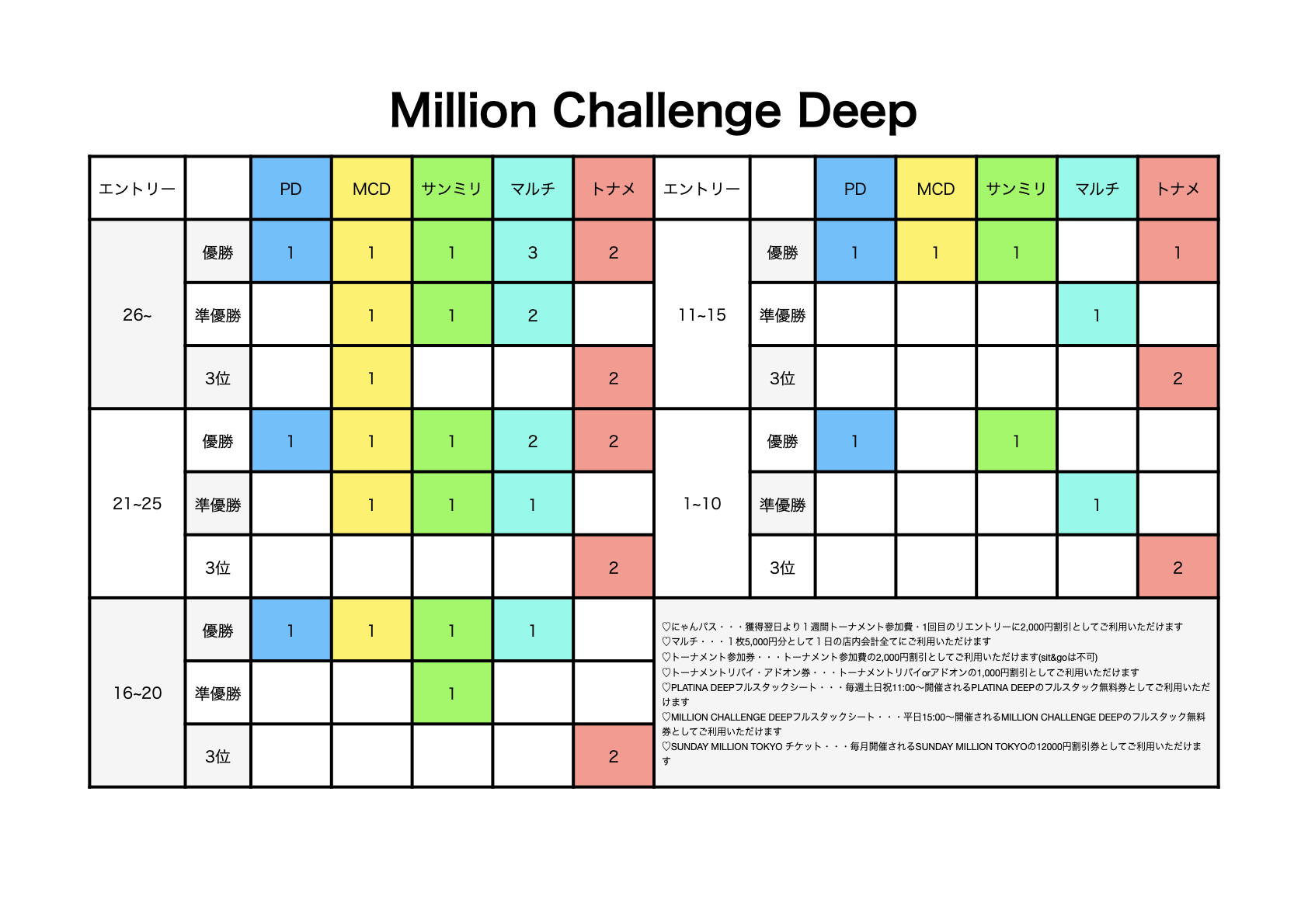 ♡MILLION CHALLENGE DEEPフルスタックシート・・・平日15:00〜開催されるMILLION CHALLENGE DEEPのフルスタック無料券としてご利用いただけます