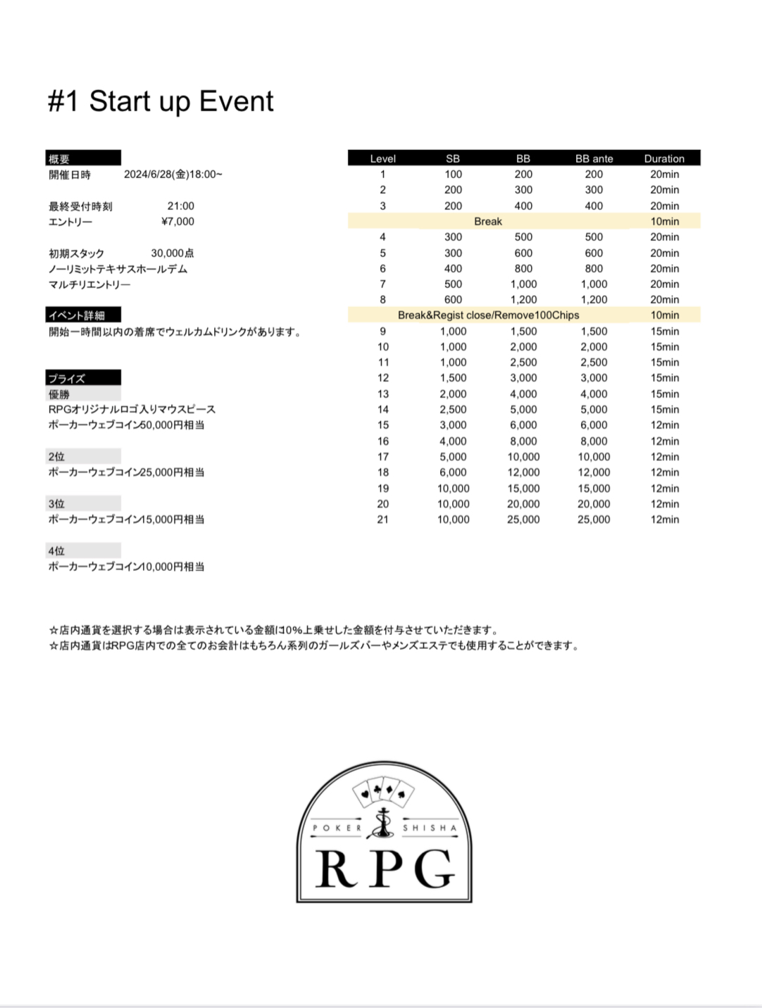 最初のイベントはプライズ総額10万円相当、ポーカーWEBコインまたは系列店舗でも使用できる店内通貨から選ぶことができます。