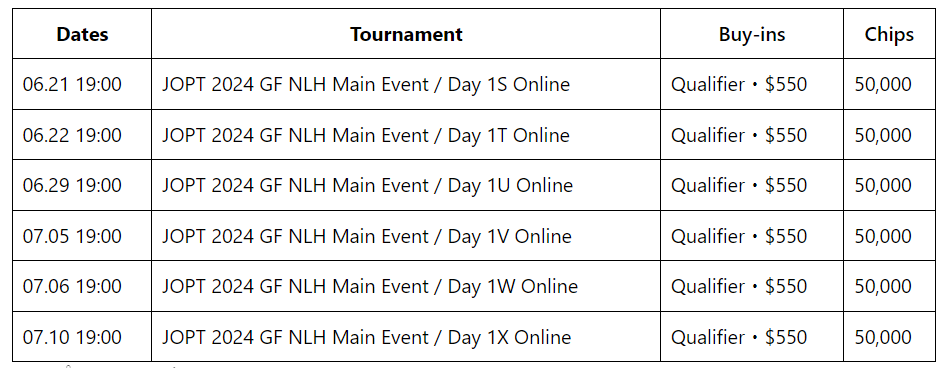 24.06.01 – 24.07.10までの期間、JOPT 2024 Grand Final Main EventのオンラインサテライトをGGPoker内で開催。