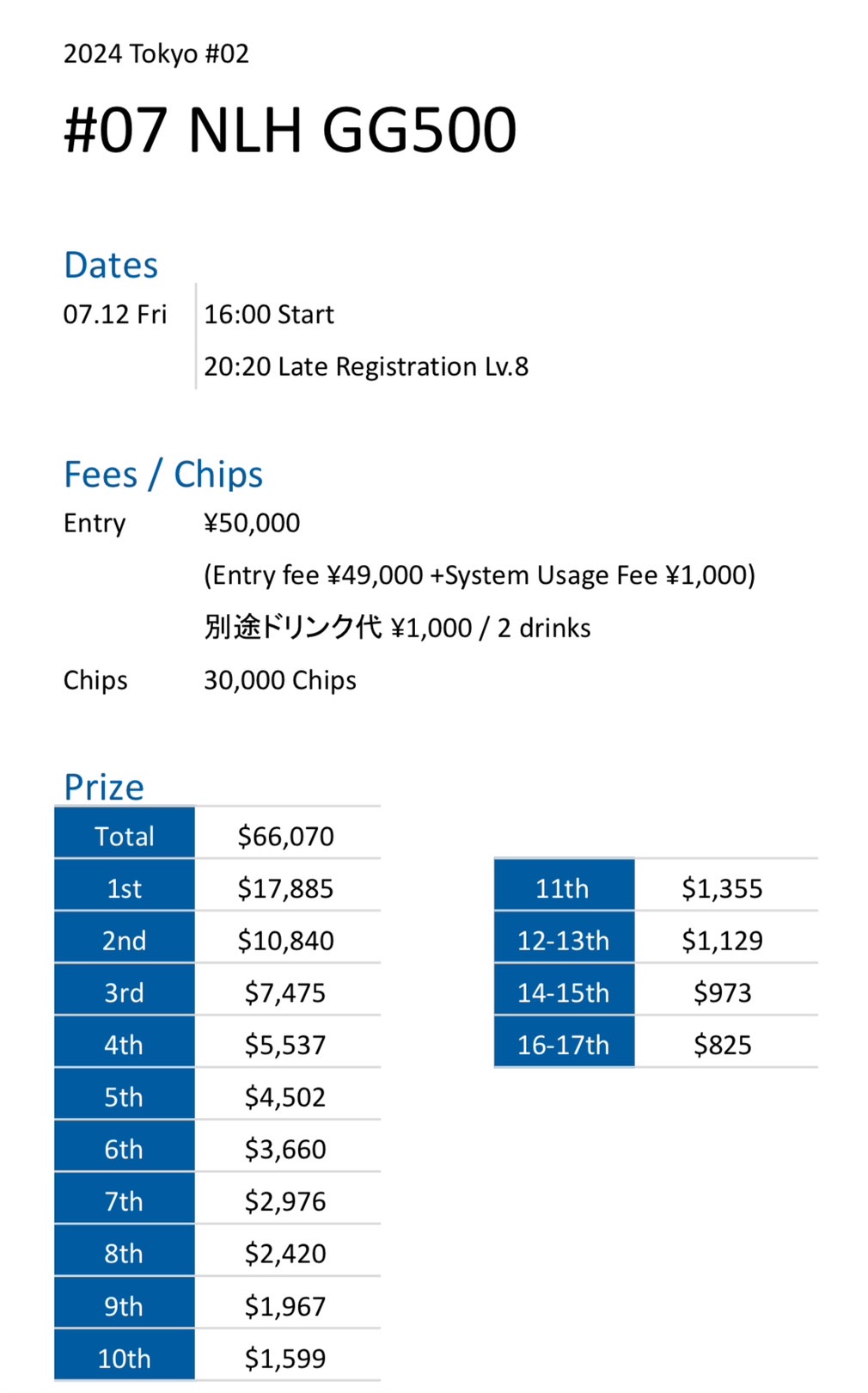 【総額25万円相当‼】JOPT 2024 Tokyo #02「GG500」スペシャルサテライト【上位5名】
