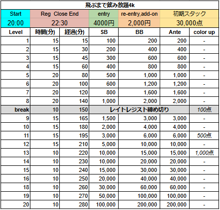 トーナメントエントリー~シートオープンまでの間、ずっと飲み放題付きのトーナメントです