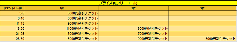 - リエントリー →1,000円/30面体サイコロの出目×1,000点(15,000点保障)