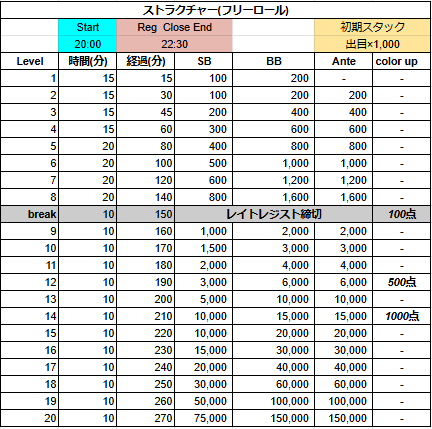 | ゲーム | 20,000点 / ノーリミット / テキサスホールデム / normal / Ticket |