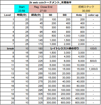 POKER WEB COINトーナメント 2k